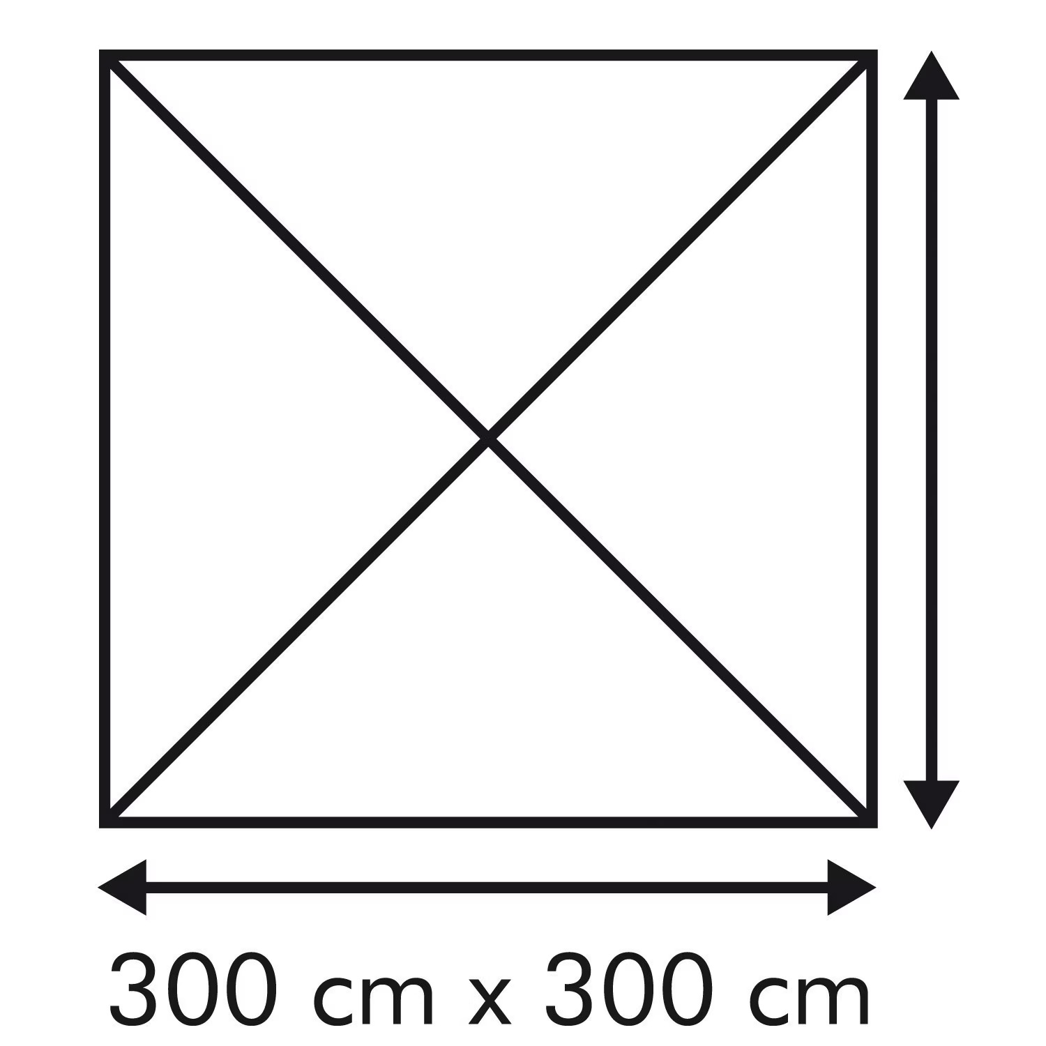 Abmessungen (ca.): H/D: 284/300 cm – Spannweite: Ø ca. 300 cm – Stange: Ø ca. 4,8 cm