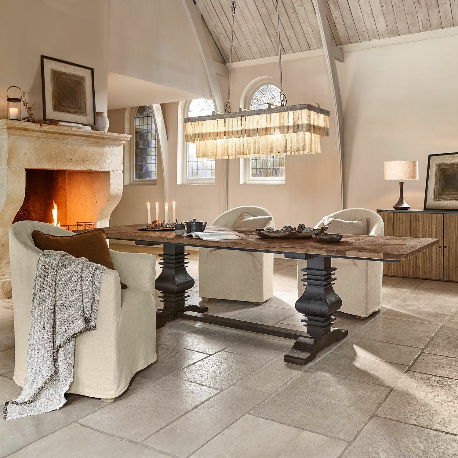 Der Esstisch “Tisch QUILLANCOURT Ulmenholz Intarsienmuster” vereint perfekt kunstvolle Handwerkskunst und praktisches Design.