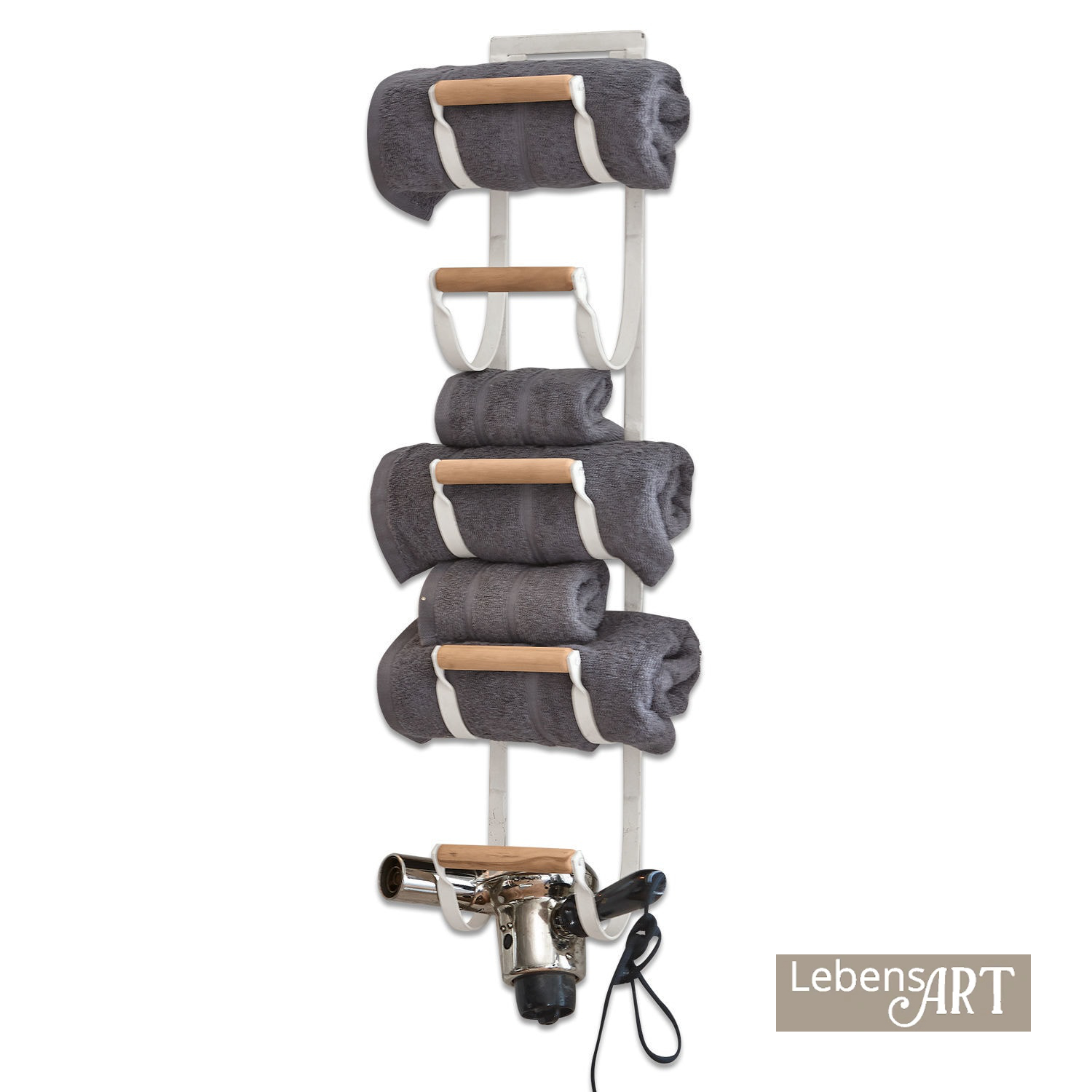 Auch als dekorativer Aufbewahrungsort für Handtücher im Bad macht der “Wandorganizer Utica Eisen weiß” eine gute Figur.